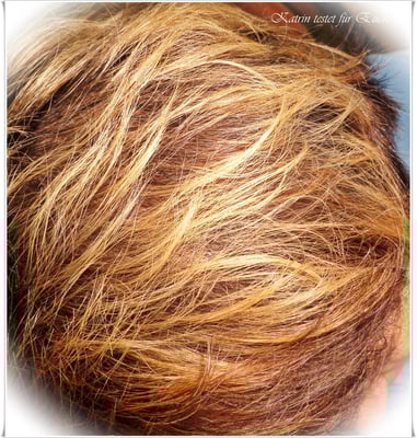 Die Haare wirkten gepflegt und die blonden Strähnen leuchteten wie Sonnenstrahlen auf meinem Kopf. Ich wollte nur sagen, es sah richtig gut aus, denn wenn man blonde Haare oder Strähnen hat, möchte man auch, dass sie schön glänzen und das hat BIOTURM erreicht.