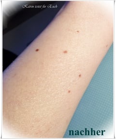 Leider kann man es nicht immer 100 % gut darstellen, aber meine Haut war vorher trocken, weil ich gerade aus der Badewanne gestiegen war und unser Wasser ist sehr kalkreich, daher ist meine Haut danach immer etwas gestresst :( ...