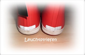 An der Ferse beider Gummistiefel befindet sich ein Reflektorstreifen (heller Leuchtstreifen), so dass man auch im Dunkeln gesehen wird. Dieses finde ich ganz speziell für Kinder gut, z.B. wenn sie morgens zur Schule gehen - im Herbst und Winter ist es in den Morgenstunden noch sehr düster.