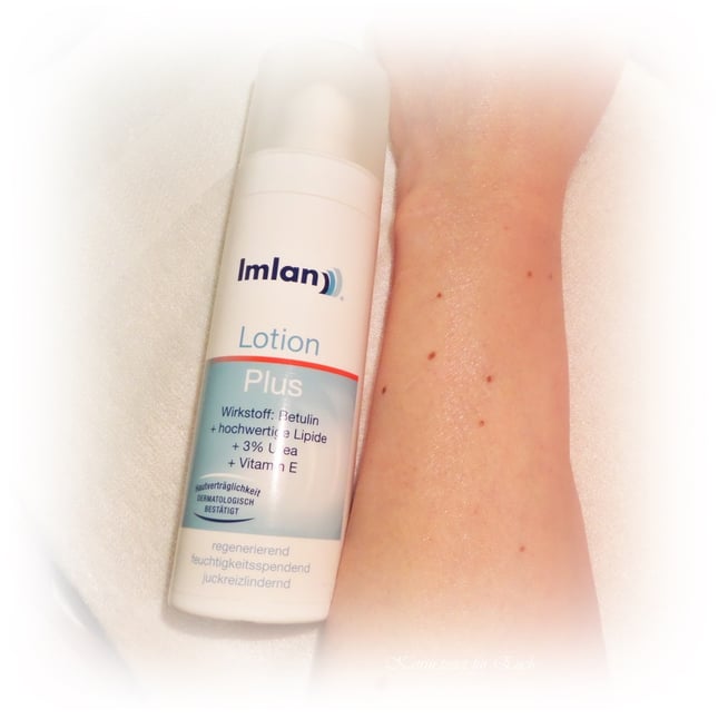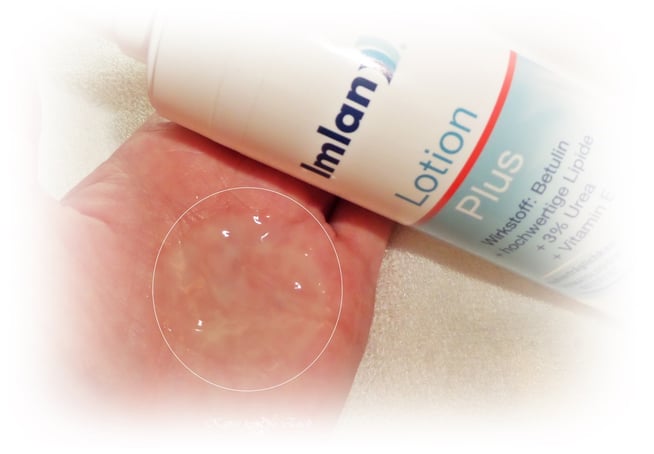 Nach dem Einziehen der Imlan Lotion Plus wirkte die Haut sehr gut gepflegt, war sehr weich und glatt (ebener). Sie bekam eine Portion Feuchtigkeit und gewann wieder etwas an Spannkraft - was sich bei längerer-täglicher Anwendung noch verstärkte.