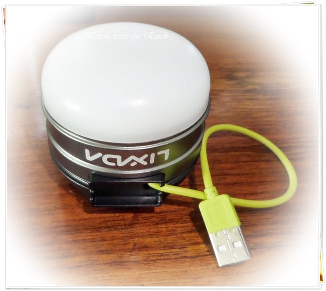 Auladung der Lampe: läuft über USB mit kurzem grünen Kabel
