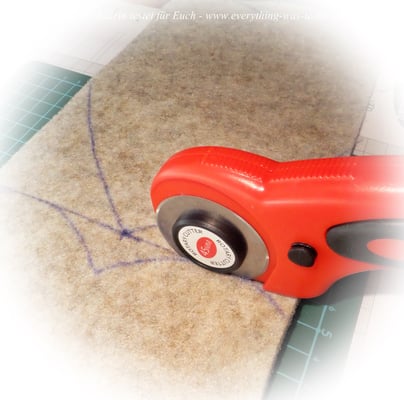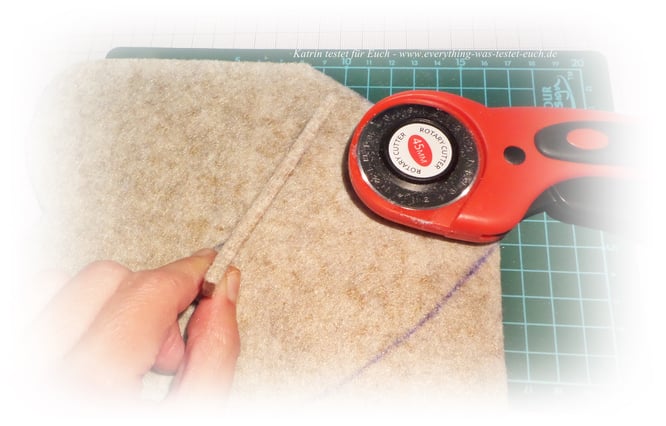 Als ich aber einen sehr dicken Filz gekauft habe und mein Schere da einfach nicht mitspielen wollte, dachte ich, ok, dann probiere ich doch mal einen Rollschneider aus.