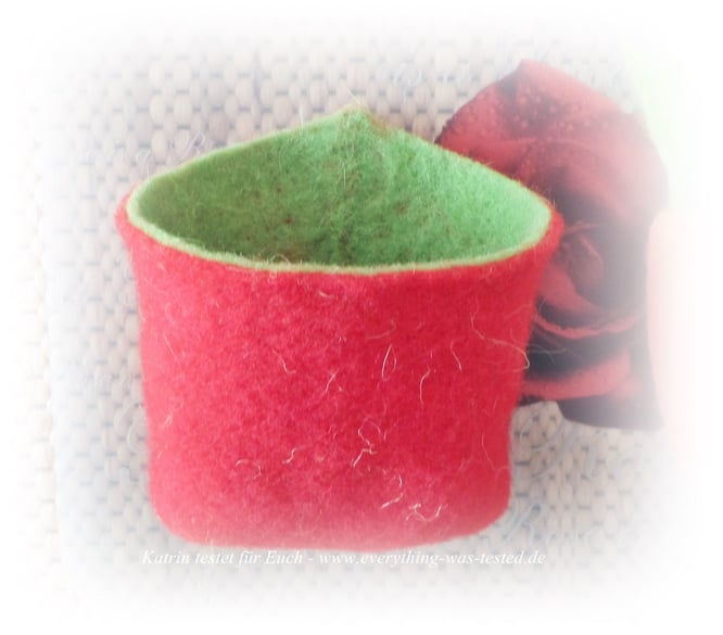 Gefilzt wird die Vlieswolle mit Nadeln, zumindest beim Trockenfilzen. Beim Nassfilzen wird die Vlieswolle mit Seife und Wasser mehr oder weniger verrieben, bzw. verfilzt. Anfangs war ich ein wenig skeptisch, aber nachdem ich das Ergebnis gesehen hatte, habe ich immer mehr Lust darauf bekommen und habe schon einige Sachen gefilzt :) Ich werde Euch diese später noch in mehreren separaten Berichten zeigen.