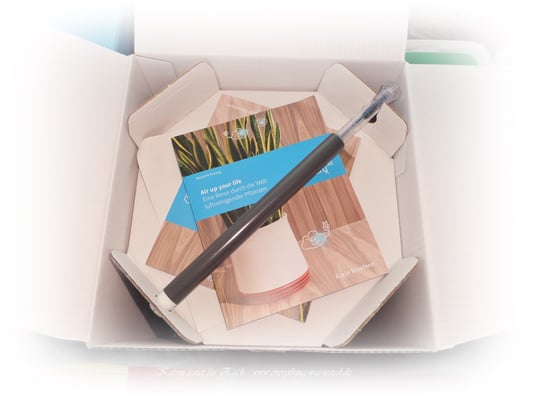 Beim Auspacken gefiel mir der runde Pflanztopf schon mal sehr gut, obwohl er auf den ersten Blick eigentlich gar nicht so spektakulär aussah und als ich ihn auseinander nahm, dachte ich, aus so wenig Teilen wird dann die Luft mit der Pflanze und Wurzeln gereinigt, dass ist schon ein Ding.