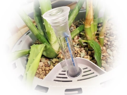Beim Gießen ist zu beachten, dass man zuerst 1 Liter Wasser direkt an die Pflanze gibt und ein paar Minuten wartet, denn dann zeigt der Wasserstandsanzeiger wie viel Wasser schon enthalten ist und Ihr müsst nur noch den Rest in die Wasserkammer aufgießen. Die Füllmenge des Wassertanks beträgt bis zu 1, 8 Liter.