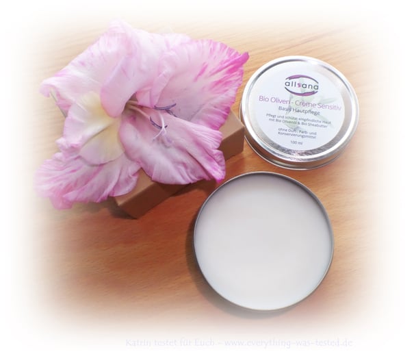 Die allsana Bio Olivencreme sensitiv wurde in einer Metalldose mit einer recycelbaren Umverpackung aus Pappe geliefert und seine Farbe ist weiß, die Konsistenz ist weich - kommt immer auf die Temperatur im Raum an. Der Geruch ist fast neutral - viell. so ein kleiner Hauch von Olivenöl. 😊