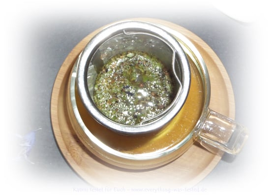 - Zubereitung: Du nimmst einen gehäuften Teelöffel pro Tasse von der Teemischung und heißes Wasser mit einer Temperatur von 70-80 Grad, dann einfach 3 bis 5 Minuten ziehen lassen und genießen.
