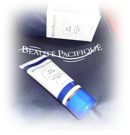 Zitat:"Pit Stop ist das neue, biologisch wirkende Deo Roll-on von Beauté Pacifique, das sowohl bei geringer als auch bei starker Transpiration und Geruchsbelästigung hilft."