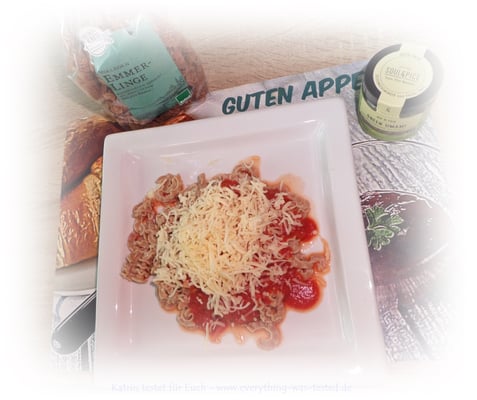 - 1 x 400 g herzafte Bio Emmerlinge Vollkornnudeln, Bioland & FairBio zertifiziert (UVP 3,85)
