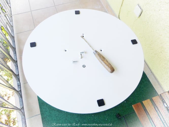 großen Raum und außen auf dem Balkon benutzen. Angeboten wird er in zwei Farben: in weiß und in schwarz - wir haben weiß gewählt.