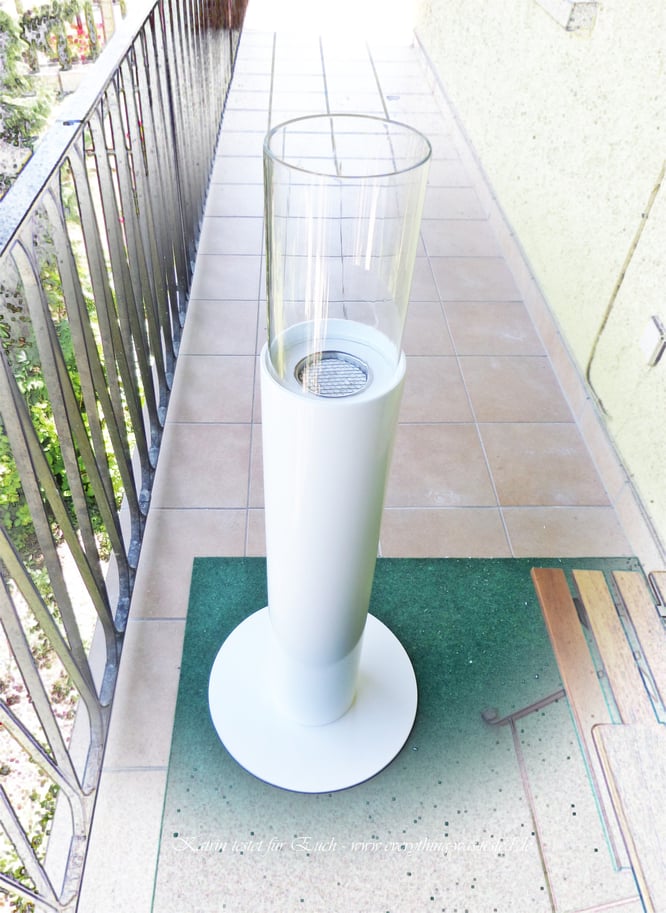 Bis jetzt ist der Glaszylinder nicht zu Bruch gegangen und der Kamin ist ein richtiger Hingucker. Wenn es jetzt draussen mal kühl wird und man die Heizung nicht anmachen kann, dann ist dieser Standkamin schon ein sehr gute Idee - für innen wie für aussen.