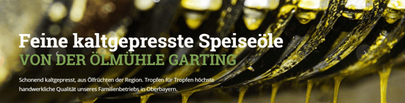 Ölmühle Garting bietet hochwertige Lebensmittel aus Bayern - kaltgepresstes Speiseöl, Mehle sowie Saaten, Kerne und Nüsse