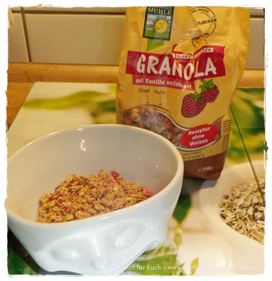 Geruch des Granola Erdbeer-Himbeer ist lecker nach Frucht und Konsistenz angenehm knusprig. Geschmacklich hat mich die Müsli-Mischung ebenfalls überzeugt und es ist nicht zu süß, da Honig und nicht Zucker verwendet wurde - Honig schmeckt immer besser ! Das Müsli kann man mit Milch zum Frühstück genießen, aber auch in einem Joghurt als Nachtisch oder als Crunch über ein Eis streuen 🍧 - es gibt so viel leckere Ideen, wie man es vernaschen kann. 4 von 5 Sterne gebe ich gern !