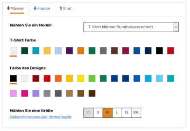 Bei der Auswahl des T-Shirts kannst Du zwischen dem Träger (Männer/Frauen/Kind) wählen.