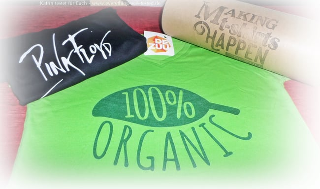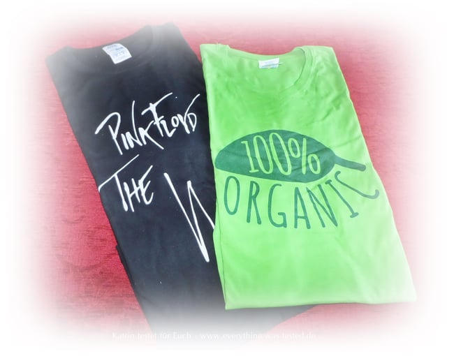 Mein Männel wählte ein T-Shirt in schwarz mit dem Aufdruck - Pink Floyd -The Wall und ich suchte mir natürlich passend zum Blog das grüne T-Shirt mit dem Aufdruck 100 % ORGANIC aus. Beide sehen schick aus und die Farben und der Druck sind sehr gut.