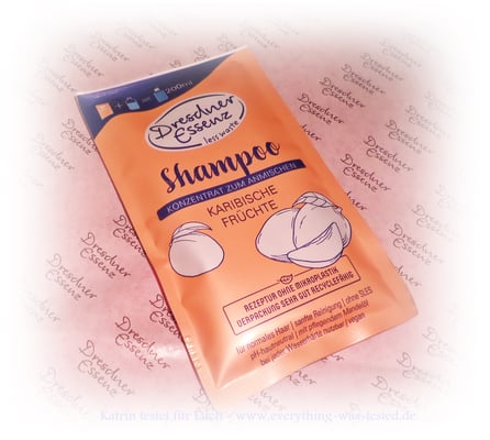 Das Dresdner Essenz Pulver-Konzentrat Shampoo mit dem Duft exotischer Früchte enthält ebenfalls pflegendes Mandelöl und Aloe Vera. Es sorgt für sauberes geschmeidiges Haar, wohltuende Pflege und einen schönen Haarglanz. Die Hautverträglichkeit des gebrauchsfertigen Produktes wurde dermatologisch getestet und bestätigt.