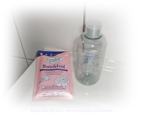 Die Dresdner Essenz Pulver-Konzentrat Duschbad mit sinnlichem Pfingstrosenduft enthält ebenfalls pflegendem Mandelöl und Aloe Vera. Es sorgt für saubere und geschmeidige Haut. Durch seine pH-hautneutrale Basis hilft es der Haut beim Duschen vor dem Austrocknen. Die Hautverträglichkeit des gebrauchsfertigen Produktes wurde dermatologisch getestet und bestätigt.