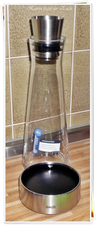 Den Kühlakku legst du ins Stövchen und somit kann auch nichts mehr verrutschen, anschließend die Karaffe mit einem gekühltem Getränk Eurer Wahl oben auf und schon hast Du ein kühles Getränk, laut emsa ca. 4 Stunden, wenn sie nicht unmittelbar in der Sonne steht. Wollt Ihr sie mit in den Garten nehmen und die Temperatur ist da mehr als 20 Grad, dann wird die Kühldauer natürlich etwas verkürzt.