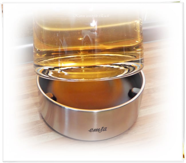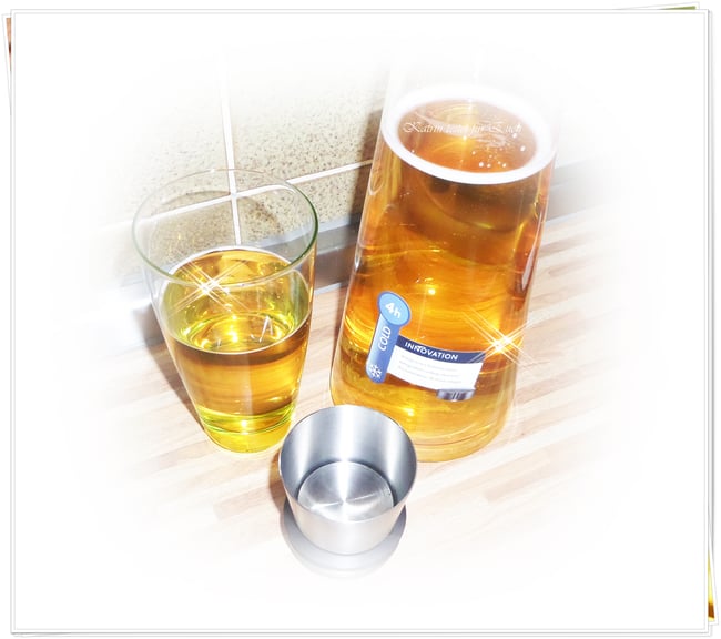 Bitte keine heißen Getränke hinein, denn dafür ist das Glas der Karaffe dann doch zu dünnwandig - etwas warmes könnt Ihr aber kein hineingehen .
