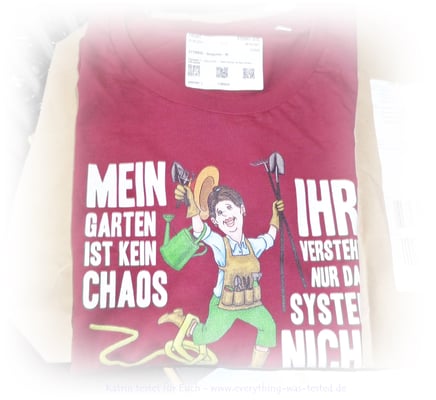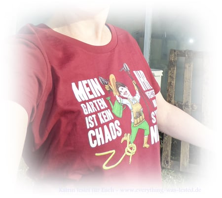 Das Baumwoll T-Shirt von "Garten & Ich" gefällt mir sehr gut und ich habe die Größe M bestellt, da ich bei der Gartenarbeit ein Shirt benötige, welches nicht so eng anliegt, denn ich möchte arbeiten und keine Modenschau damit gewinnen 😋 - aber schick darf es schon aussehen 😊 ...