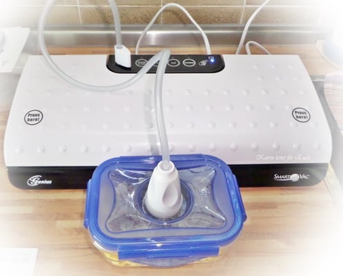 Die Industrie macht es uns im Supermarkt vor und wir können es mit einem eigenen Vakuumierer ganz einfach selbst Zuhause nachmachen. Man kauft z.B. etwas Vakuumiertes und öffnet es, anschließend legt man es in eine normale Dose, da hält es sich natürlich nicht ellenlang, aber wenn wir es wieder vakuumieren, dann hält es sich schon länger und bleibt dabei wiederum keimfrei.
