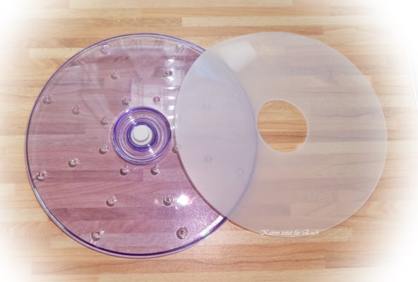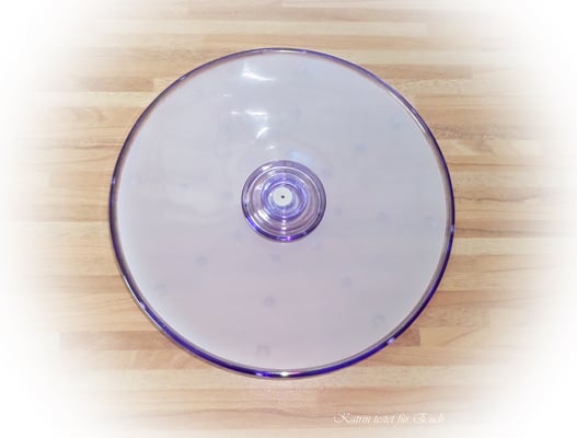 Der Vakuum-Universal-Deckel hat ein Durchmesser von Ø 19 cm und besteht aus zwei Teilen in der Farbe blau (sieht auf dem Bild eher lila aus). Außen stabiles Plaste (ohne BPA) und innen eine Silikonscheibe, die am Ende das Ganze dicht verschließt.
