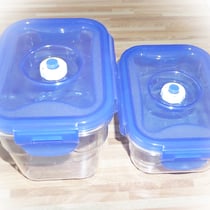 - Universal-Vakuum-Dosen mit passenden Deckeln zum Vakuumieren von Lebensmitteln (praktischem Drehverschluss, auslaufsicher).