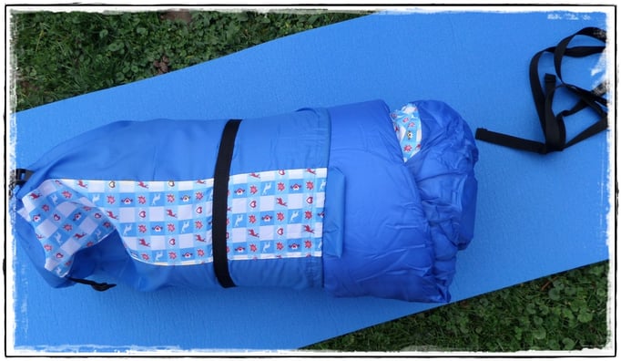 Da ich den Schlafsack nicht mitten auf die Wiese legen wollte, habe ich eine Iso-Matte darunter gelegt, wäre auch so ideal für die weiter Nutzung des Schlafsackes.(es muss immer eine Isomatte unter jeden Schlafsack, unten drückt man die Füllung durch sein eigenes Gewicht zusammen und somit kann hier kein Schlafsack isolieren)