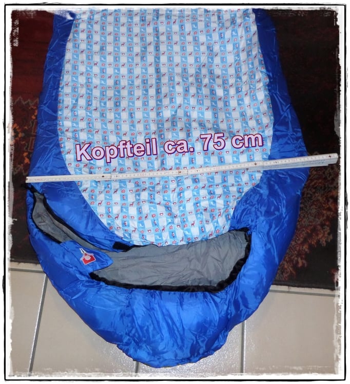 Gesamtlänge des Schlafsackes: über 2 m Schulterbereich: ca. 85 cm
