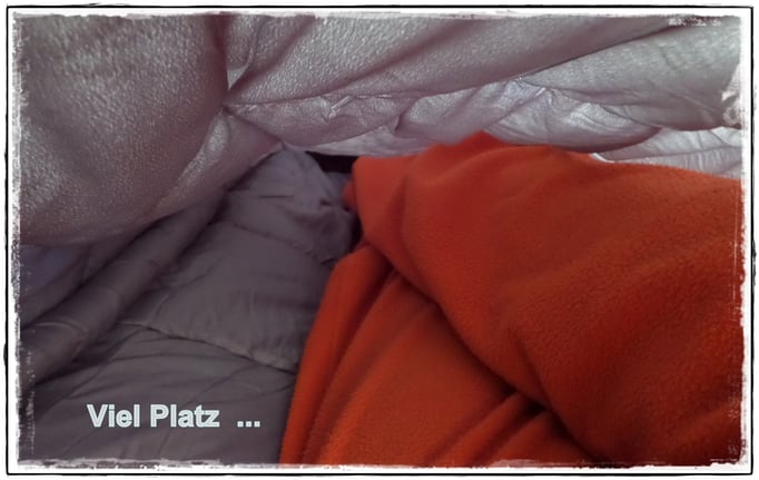 Das Schlafsack - Design wie erwähnt, gefällt mir sehr gut, musste mich aber dennoch erst einmal daran gewöhnen.