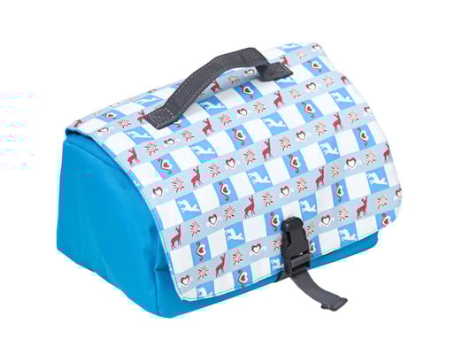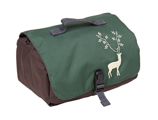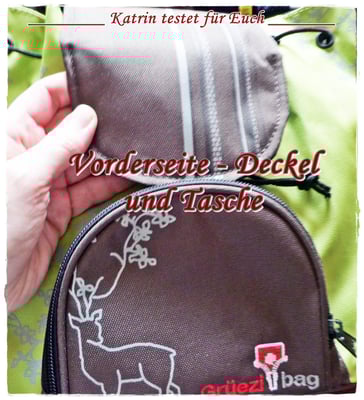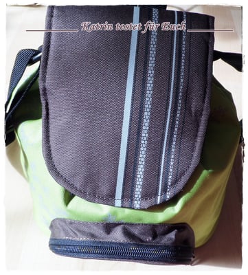 Wie Ihr oben sehen konntet, befindet sich im Vorderbereich eine kleine Tasche mit Reissverschluss und dem aufgesticktem Logo von Grüezi+bag. Verziert wurde sie mit einem Elchaufdruck. (gefällt mir sehr gut)