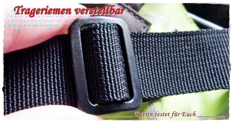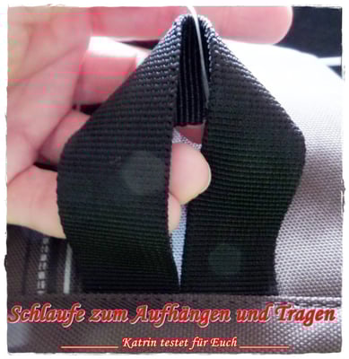 Wie bei jedem normalen Rucksack gibt es auch hier die Trageschlaufe, die man auch zum Aufhängen benutzen kann und einen verstellbaren Tragegurt. OK, klingt eigentlich normal, nun kommt aber Markus wieder mit einer zusätzlichen neuen Idee/Überraschung. Lies bitte unten weiter !
