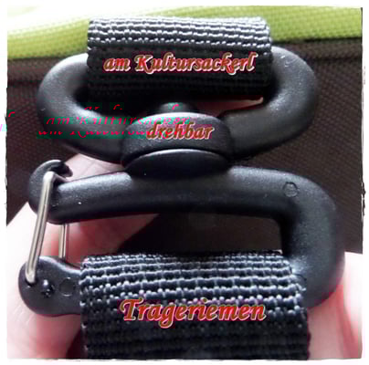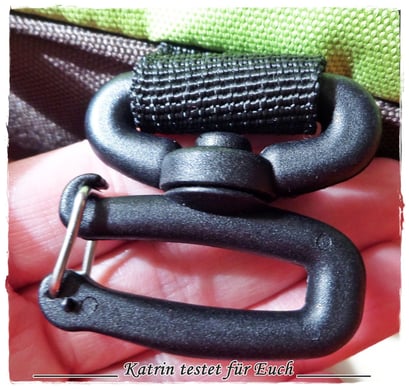 Den Spangenverschluss des Tragegurtes, wo er eingespannt ist (Bild 1) fiel mir auch sofort ins Auge und ich drückte und fummelte beim ersten Mal daran herum, aber nichts passierte. *hmm, aber warum hat der Spangenverschluss einen Metallbügel ?