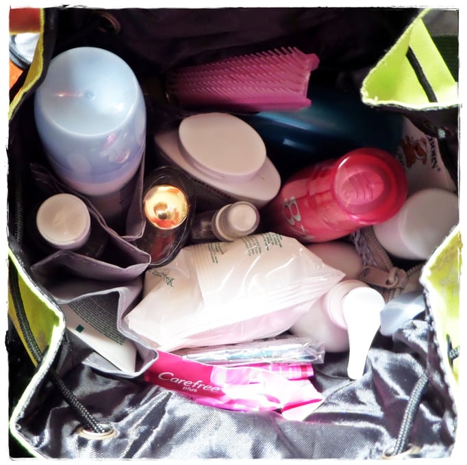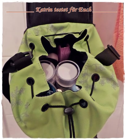 Na das ist ja mal eine geniale Idee! Kann ich mir auch gut fürs Leben auf dem Campingplatz vorstellen. Hab zwar eine Kulturtasche für uns genäht, aber so ein Sackerl ist doch was ganz Besonderes...