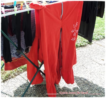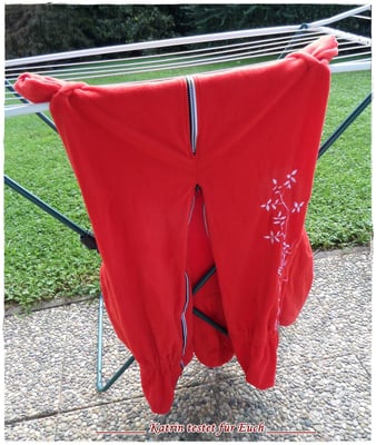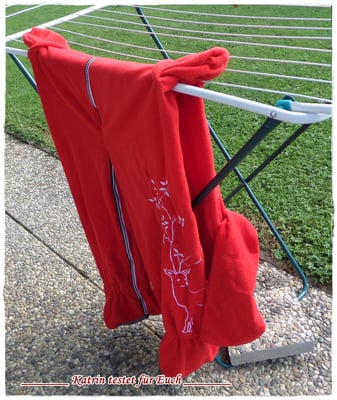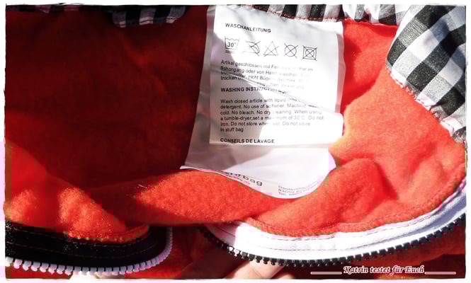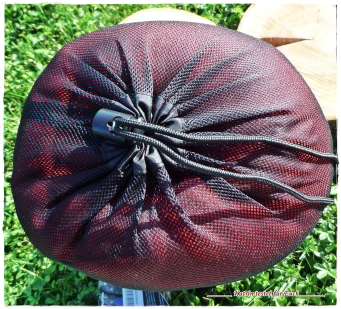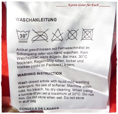 Zu einem Test gehört auch der Waschtest, das heißt, ich schaue ob der Schlafsack beim Waschen kleiner wird oder Farbe sich verändert.