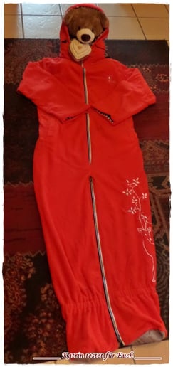 Ein Fleeceschlafsack, dem man mittels eines Reißverschlusses 'Beine' machen kann. Einfach aufzippen und schon kann man ihn wie einen gemütlichen Hausanzug tragen.