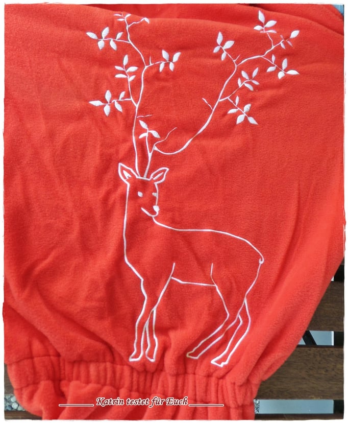 Wie immer befindet sich das Logo von Gruezi+bag direkt auf dem Produkt. (ich mag dieses Logo) und auf der linken Seite wurde eine sehr schöne Stickerei eingearbeitet, die ein zweites Markenzeichen des Unternehmens widerspiegelt. (ein Elch mit einem Blumengeweih)