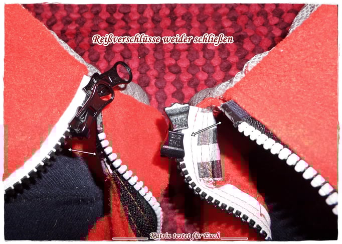 Bild 2: - beide Reißverschlüsse werden nach unten geöffnet. Warum sage ich nach unten, weil man ihn auch nach oben zippen kann ...
