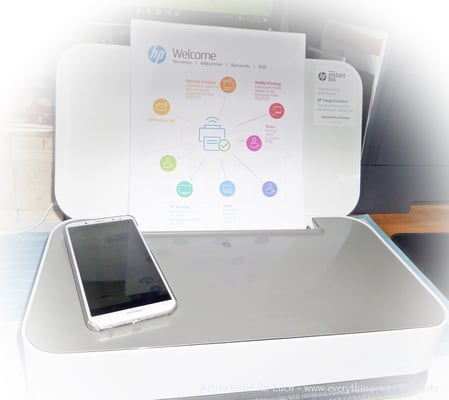 Die HP Smart (HP AiO Remote) App war in Android Play Store schnell gefunden und installiert. Anschließend wurde der Drucker über die App mit unserem Wlan verbunden - am PC ging fast alles automatisch. Unser Wlan ist ein wenig zickig, daher hatte die Verbindung ein paar Startschwierigkeiten, aber die Verbindung kam doch noch recht rasch Zustande und ich konnte auch gleich starten. Bei jedem Einschalten wählt der Drucker sich erneut im Wlan ein, das dauert meist nur ein paar Sekunden und man erkennt es am blauen Licht, denn dann ist er verbunden - zuerst, bzw. zuletzt leuchtet er grün und das bedeutet, er ist eingeschaltet oder schaltet sich gerade ab.