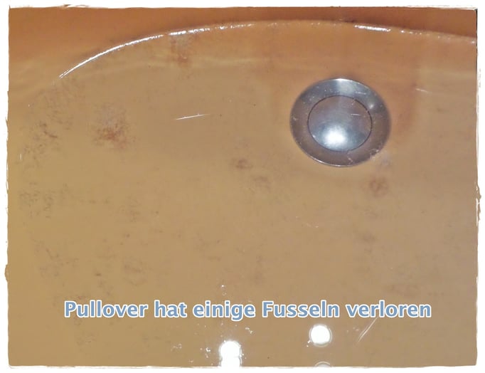 Anschließend wurde der Pullover noch ausgespült und dabei fiel mir auch das erste Manko auf. Er gab ganz schön viele Fusseln/Fasern ab und das war nicht so mein Geschmack.