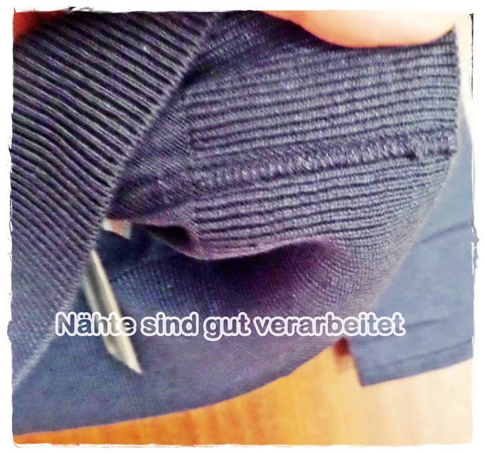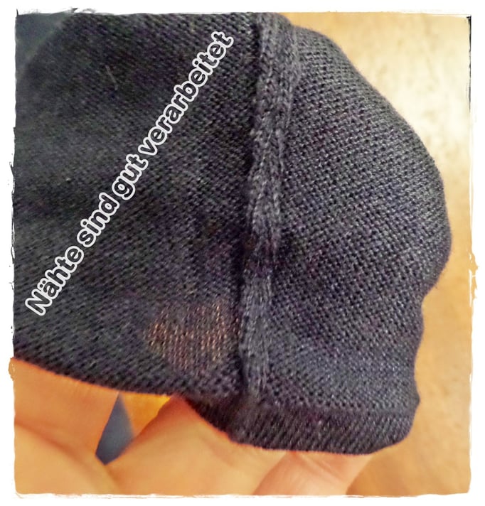 Die Nähte des Pullovers sind sehr gut verarbeitet und auch die Ärmelansätze sind sehr gut gelungen. (denn sie wurden mit einer Zierkante versehen)