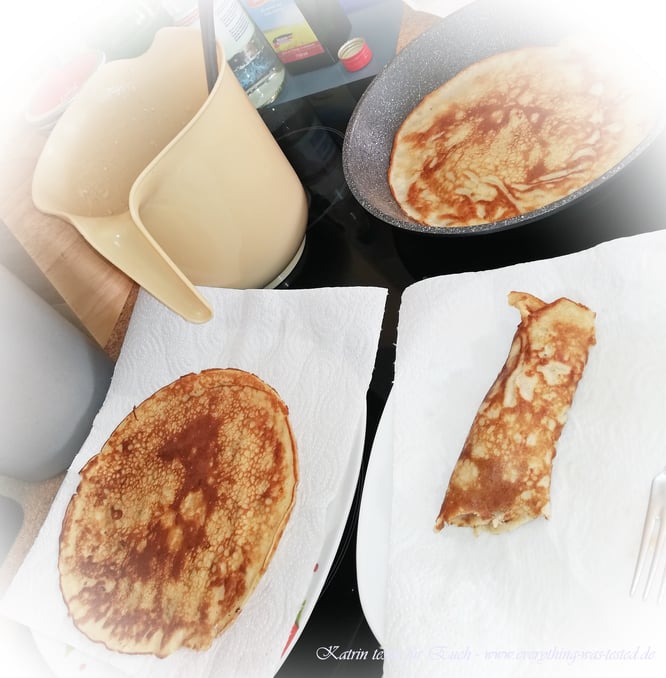 - eine Pfanne mit etwas Öl erhitzen und den flüssigen Teig nach und nach portionsweise hinein geben