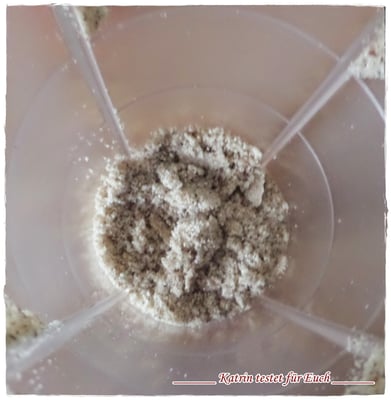 Amaranth, Kokosraspeln, Floh- und Chia Samen im Mixer zerkleinern. Anschließend die zerkleinerten Datteln, Vanille, Kakao, Prise Salz, Kokoszucker und Kokosöl mit in den Mixer geben und kräftig