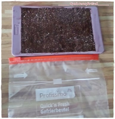 Eigentlich hätte ich das Ganze eine halbe Stunden ruhen lassen müssen, aber ich habe es sofort in die Gefriertüte gesteckt und ab in die Kühltruhe.