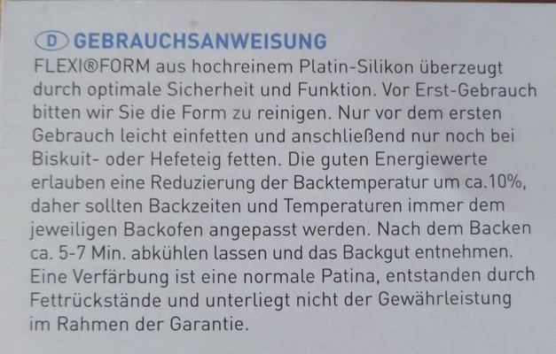 - Maximale Antihaftwirkung durch 100% Platin-Silikon (BPA frei)