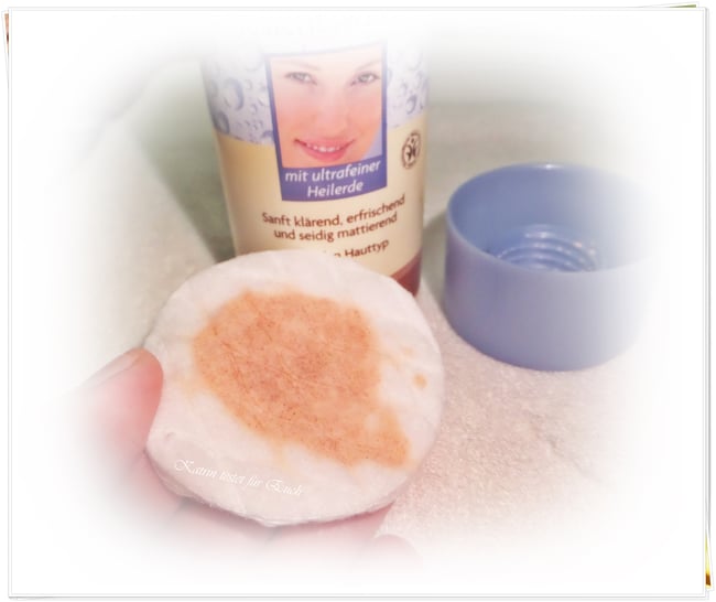 Das Gesichtswasser sieht natürlich durch seine bräunliche Farbe erst einmal ungewohnt auf dem Wattepad aus, denn es ist Heilerde enthalten. Aber wie man auf dem Bild deutlich sehen kann, ist die Heilerde wirklich sehr fein zu sehen und somit reibt auch nichts auf der Haut, sondern pflegt sie, erfrischt und reinigt sie.