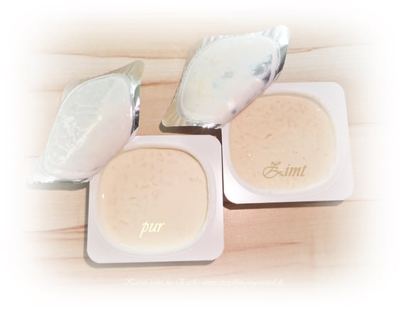 Der Milchreis mit Zimt verfeinert besteht ebenfalls aus viel Milch + einer Portion Reis, der bissfest, aber auch nicht zu hart ist. Er ist durch den Zimtanteil ein Hauch dunkler als der Milchreis Classic und erinnert mich an die Weihnachtszeit. Der Zimtgeschmack ist angenehm, aber bei der Süße würde ich mir ebenfalls etwas weniger wünschen - mein Männel schmeckt er so, wie er ist !