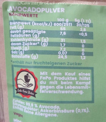 Die Idee, die Avocado in Pulverform, finde ich für mich super, so muss ich keine Avocado mehr kaufen (egal wie teuer sie gerade ist) und ich kann mir die Verwendung einteilen, da ich hier ja eine längere Haltbarkeit habe.