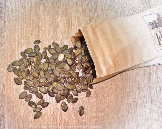 Knabberzeit ! Ich liebe Kürbiskerne und knabbere gern mal welche, denn sie haben einen fein nussigen-etwas süßlichen, aber auch ganz dezent herben Geschmack. (total lecker) Sie eignen sich aber auch zum Backen und Kochen, selbst geröstet für ein leckeres Müsli am Morgen oder im Joghurt, für einen ausgewogenen Salat und bei vielen Sachen mehr.