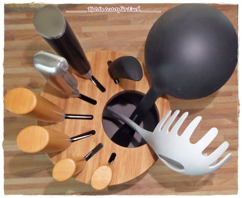 Er ist ohne schädliches Plaste, also BPA frei und bringt viel Platz für Eure Küchenmesser (7 Stück) und Küchenhelfer